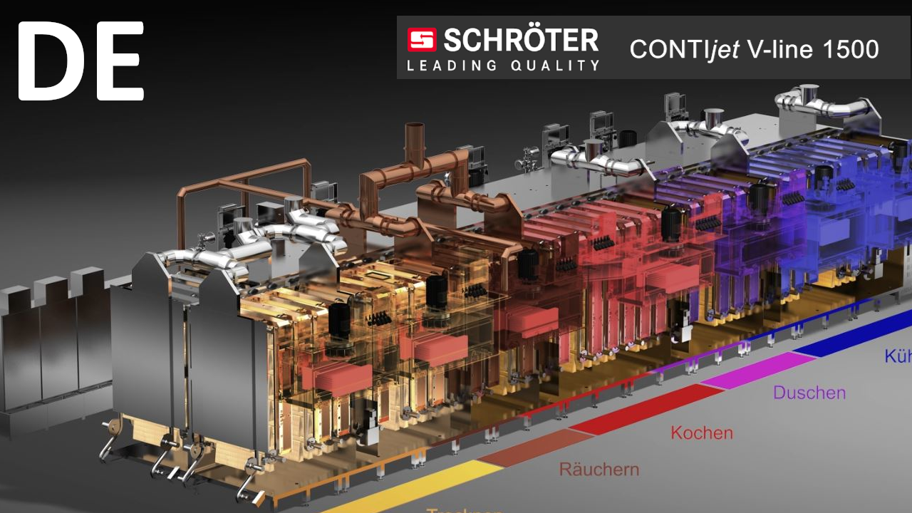 Der CONTIjet® ist die Lösung für vollkontinuierliche Produktionsprozesse, in der automatisierte Abläufe für eine maximale Effizienz und gleichbleibende Qualität der Produkte im Fokus stehen. Die Anlage verarbeitet große Mengen identischer Produkte bei kürzester Prozesszeit, minimalem Gewichtsverlust und absoluter Homogenität. Ob Würstchen, Bacon, Ente oder ähnliche Produkte: Der CONTIjet® trocknet, räuchert, kocht, duscht oder kühlt in einem durchgängigen Arbeitsablauf und wird so den hohen Anforderungen an industrielle Produktionsprozesse gerecht.